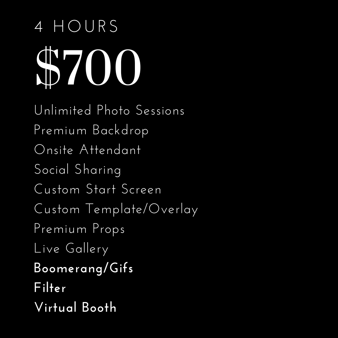 Price: $250 for use at your event, up to 6 hours. Additional hours can be added for $100 per hour.